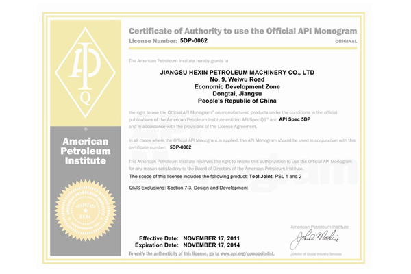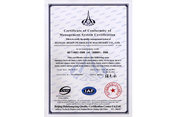 一体化加重钻杆证书