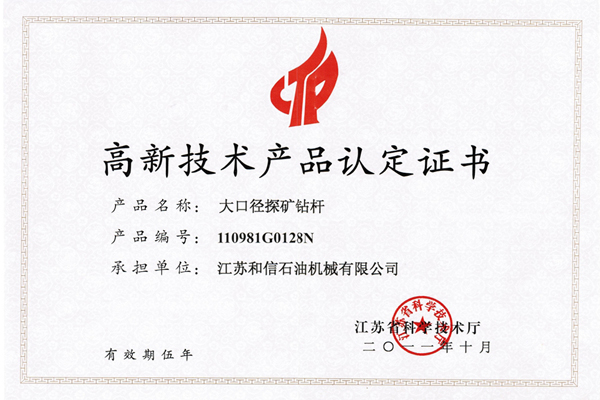 高新技术产品认定证书-加长钻铤