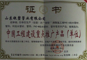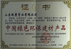 公司拥有目前国内最先进的PVC、PE管材管件生产线,专业的生产技术人员,年生产各种规格的PVC、PE管材管件两万多吨。公司生产的“银塑”牌管材、管件及系列节水产品多次被评为消费者满意产品,并通过国家、省、市三级检测。产品质量严格按照国家标准执行,顺利通过了ISO9001质量管理体系认证和ISO14001环境管理体系认证,积极推动了企业的规范性发展。