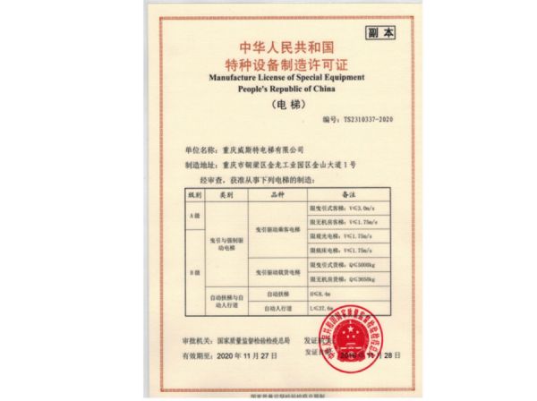 特种设备制造许可证