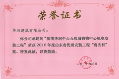 2016年度山东省优质安装工程“鲁安杯”奖