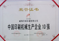 中国印刷机械企业10强证书