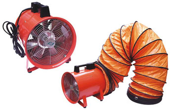 SZ系列手提式抽送轴流风机与伸缩风管驳接方便,可方便地将气体、粉尘抽送到别处和对封闭空间进行通风换气。