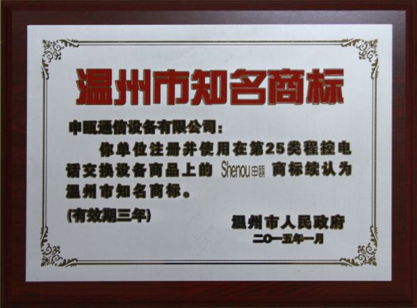 2015年 温州市知名商标