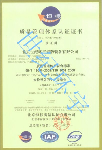 北京世纪环宇安防装备有限公司是国家ISO:9000、ISO:14000认证企业,公司成立于2000年。是北京金属探测门行业里的先驱,也是北方市场具有竞争力的核心企业。如今,已经历经风雨10年的世纪环宇公司厚积厚发,再立潮头,全力打造安检行业的龙头。   世纪环宇人坚持实施一业为主,多业发展的经营战略,在巩固和发展原有产品和市场的同时,与时俱进、锐意进取,不断开拓新的发展领域,逐步走上一条贸易、实业、投资为一体,境内外互动的多元化发展道路,从而使公司的综合竞争能力大幅提升。公司销售的“HY”系列安检门、X光机、金属探测器,以其精美的外观设计、一流的产品质量和良好的售后服务,满足了国内外客户的需求。HY系列安检设备解决方案涵盖金属生产企业、娱乐场所、车站、机场、展会、大型会议、监狱、公检法部门等各个领域。   世纪...... [ 查看详情 ]