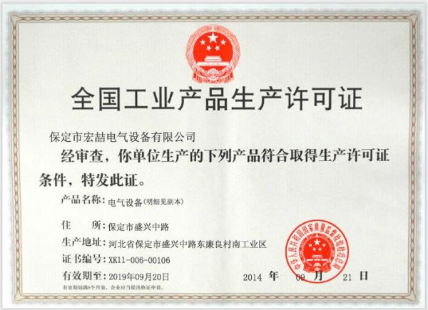 | 销售单位: 保定市宏喆电气设备有限公司 |