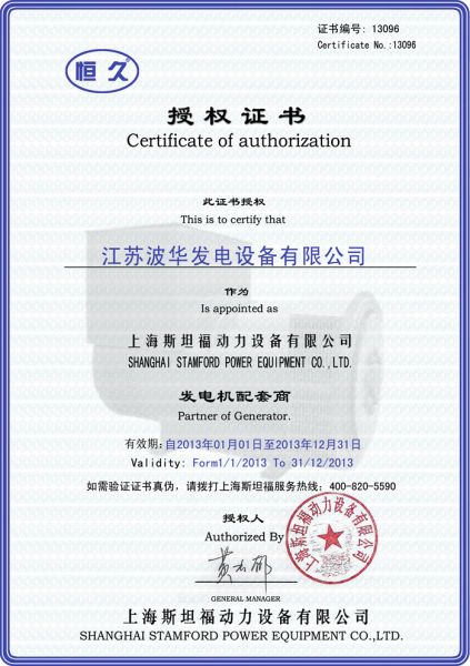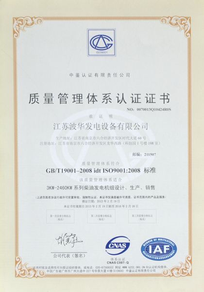 江苏波华发电设备有限公司,位于江苏省南京市。是科技导向性企业,是集交流发电机、发电机组生产、销售、租赁、配件、服务于一体的专业化生产管理型企业。公司专业生产1KW--3000KW柴油发电机组、汽油发电机组及燃气发电机组。公司技术力量雄厚,产品质量上乘,拥有现代化的生产加工成套车间,数字化的安装调试检测设备平台。 企业资质齐全,先后取得了IS09001-2008国际质量体系认证、IS014000环境认证、重合同守信用企业、江苏省产品质量稳定企业、华东地区机电产品领军企业、自理报关自营出口许可证、信息产业部入网许可证等。 波华电力依靠良好的商业信誉和发展潜力,与国内外知名引擎制造商及发电机制造商建立了长期友好的合作关系。并在全国各省会城市和主要用户集中地均设有特约销售、维修服务站,现已实行全国联保,已为两万余用...... [ 查看详情 ]
